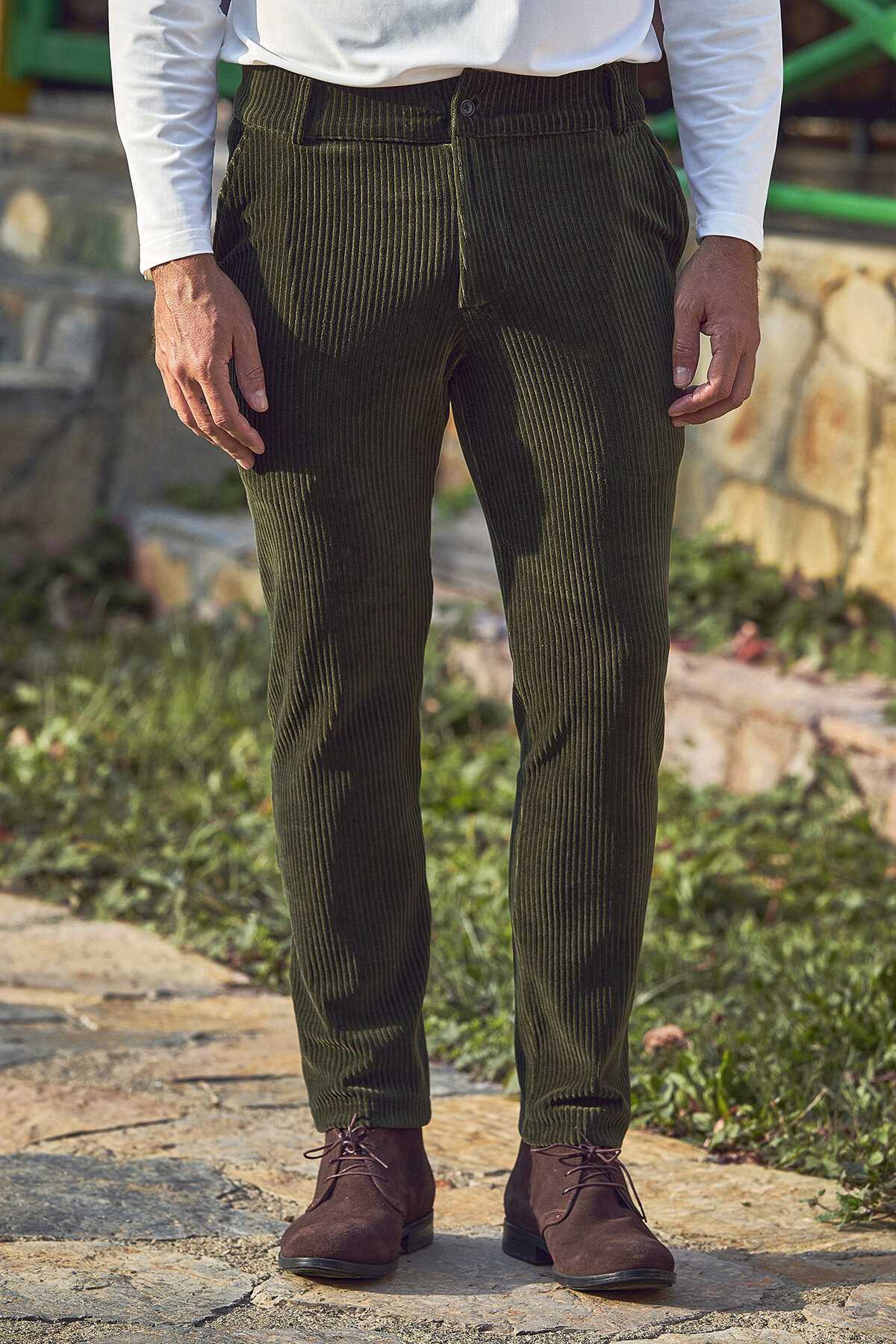Yeşil Pamuklu Kadife Pantolon