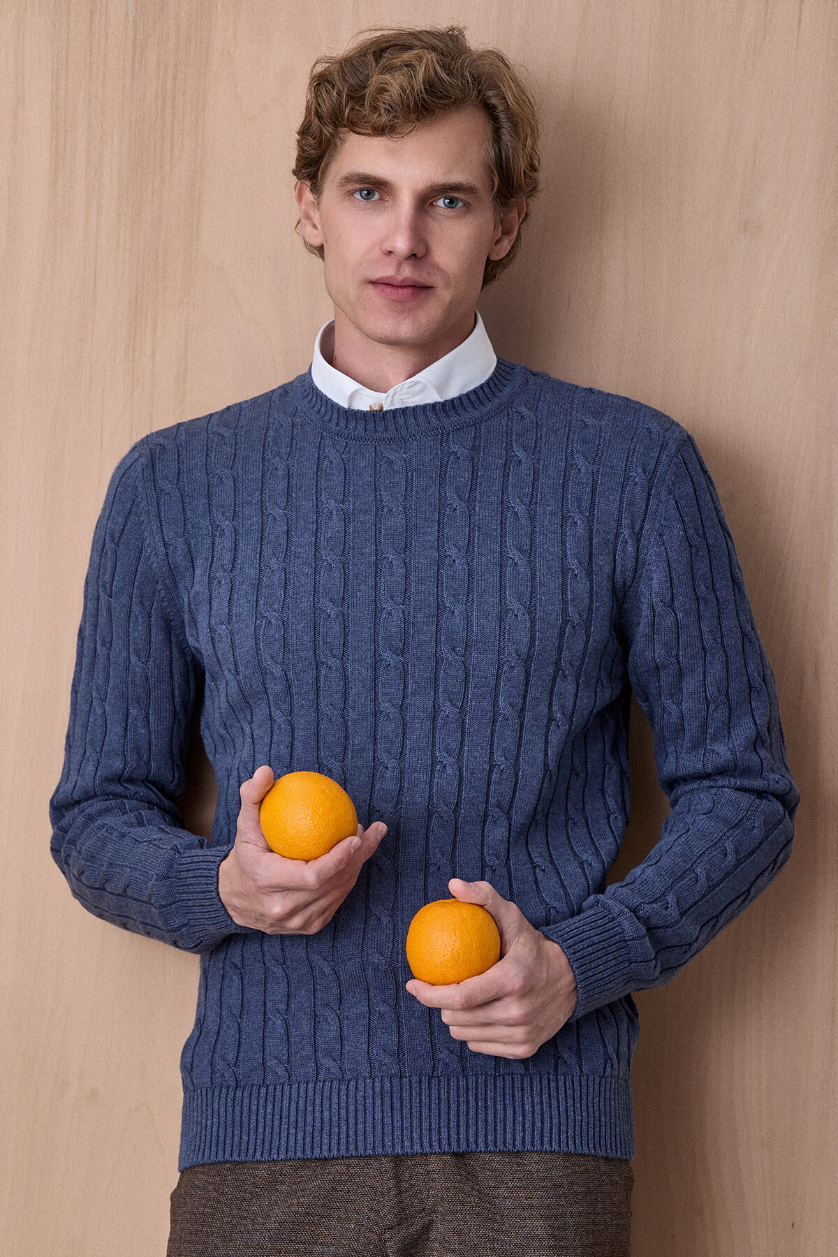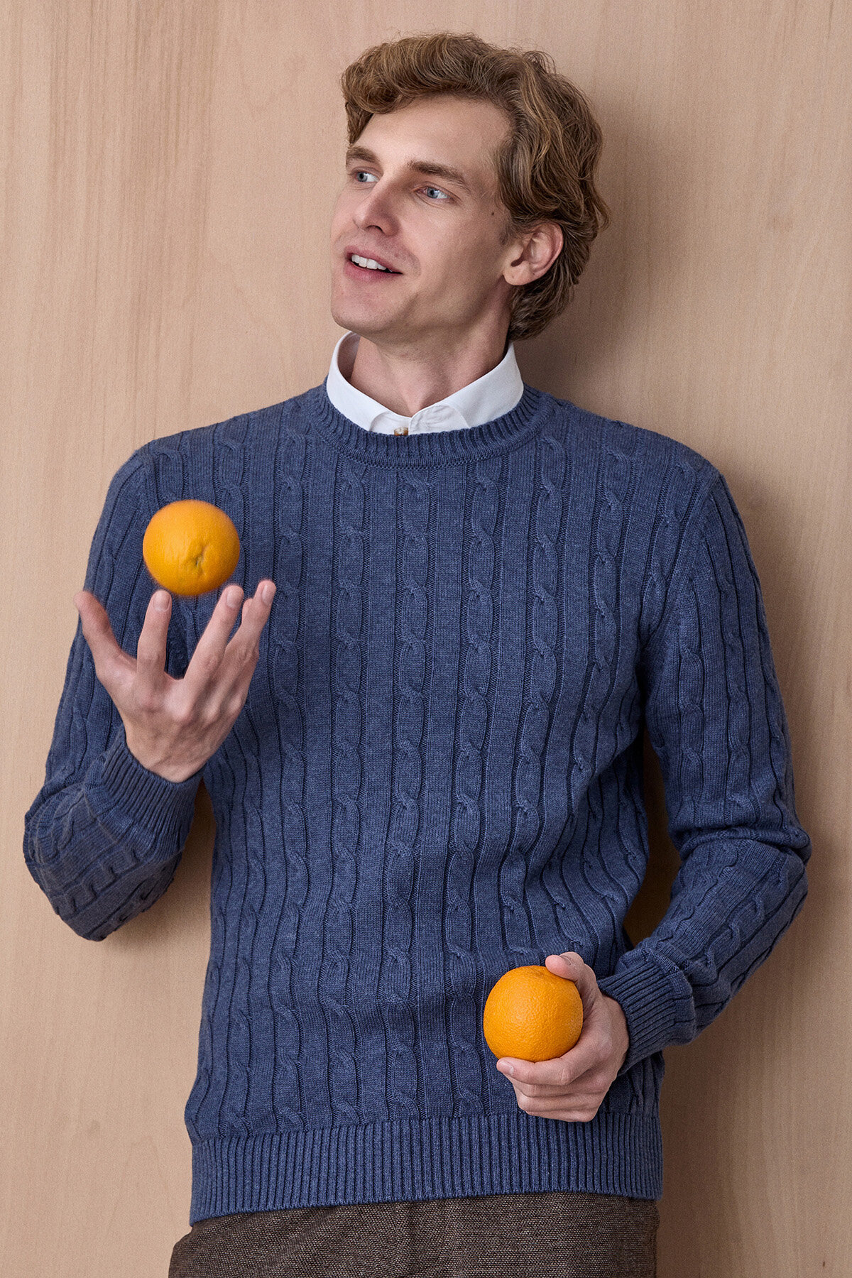 With its soft texture, braid pattern and colorful details inside the collar, this knitwear sweater adds both pleasure and elegance to your style. This knitwear, which you can wear with a shirt or on its own with its round neck and custom fit cut, will be an indispensable part of the seasonal transitions.
