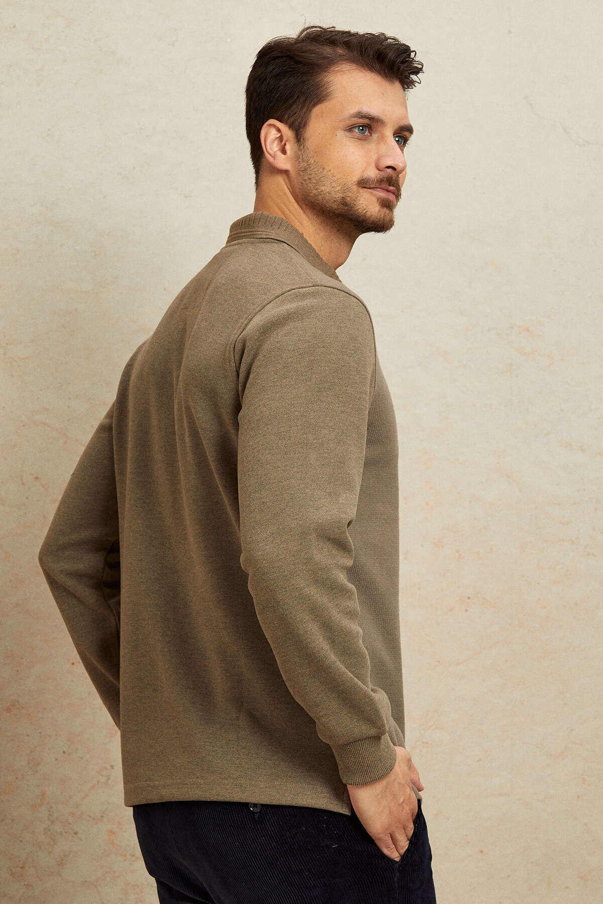 Beige Cotton Polo Sweatshirt