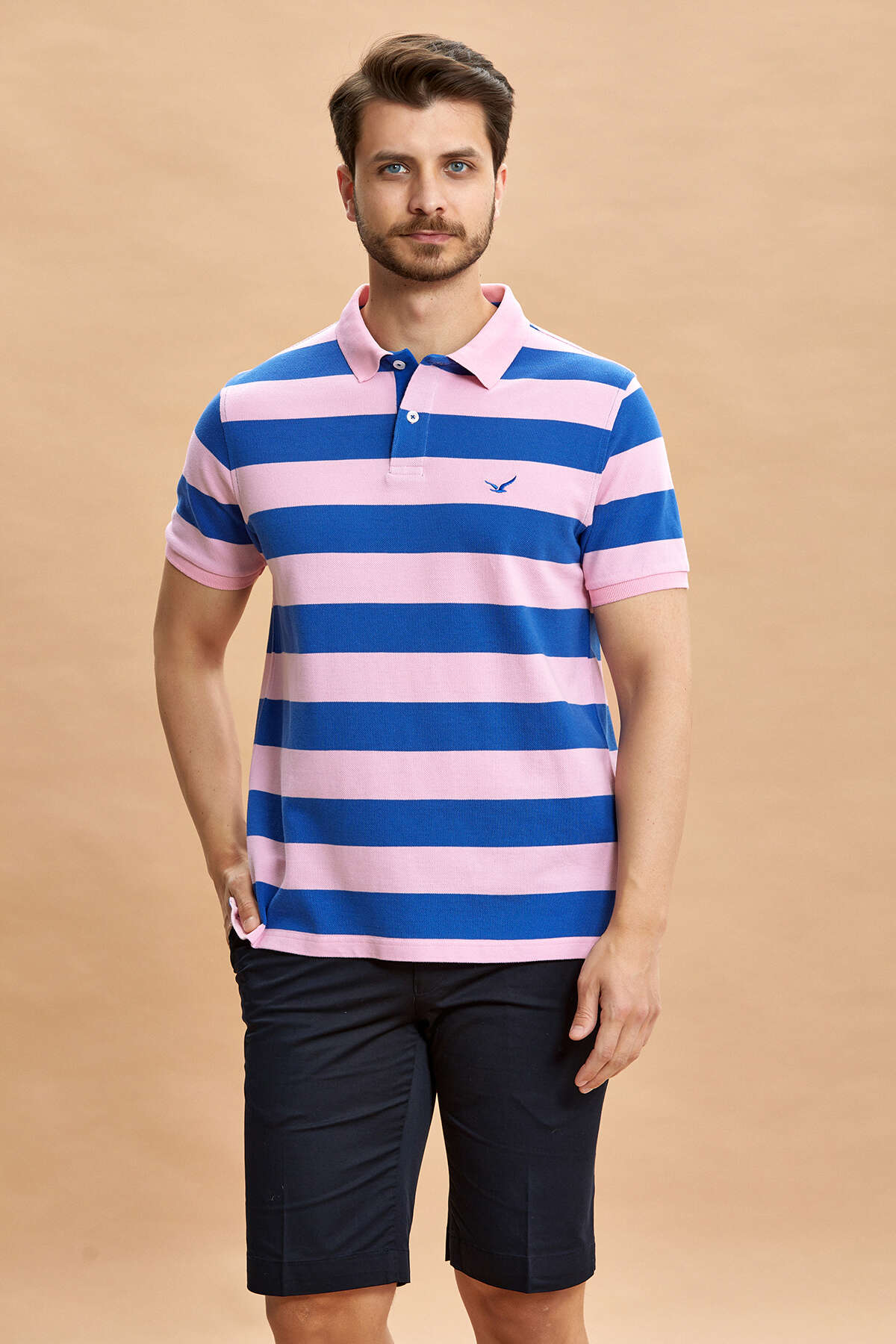 Mazzini Sax - Pembe %100 Pamuk Çizgili Polo Tişört