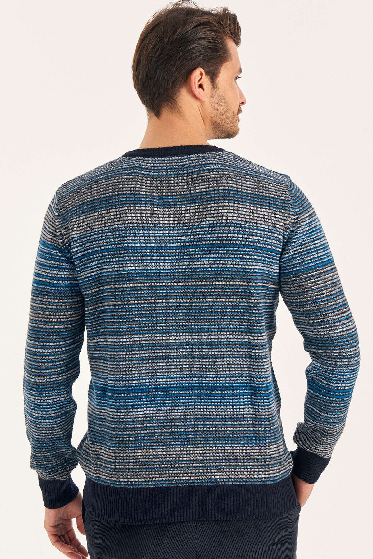 Petrol Wool Crew Neck Striped Sweater