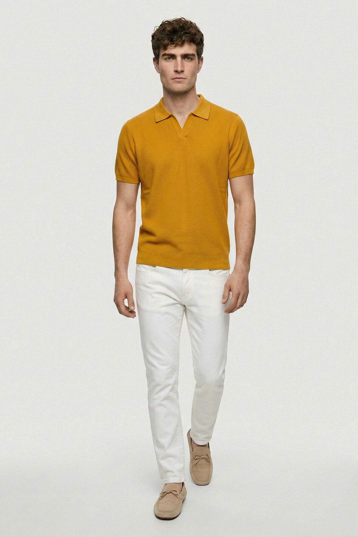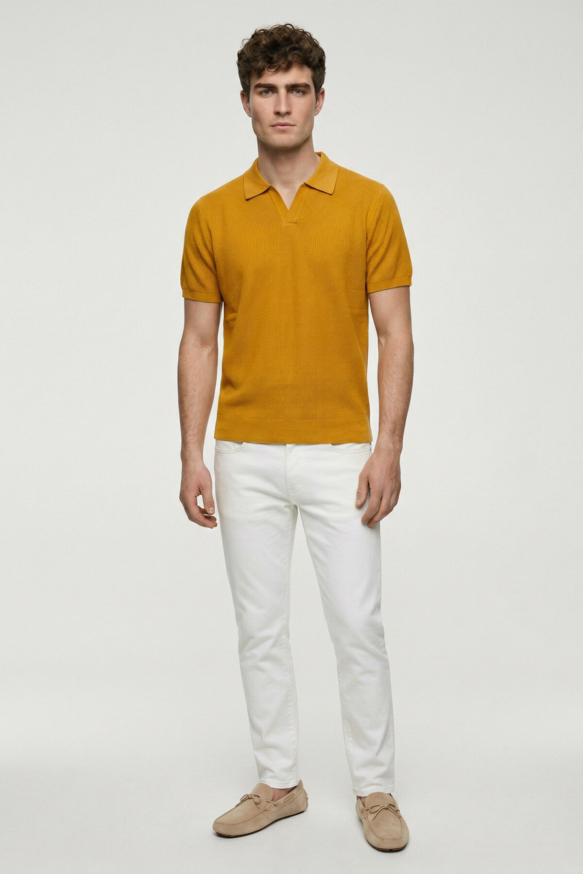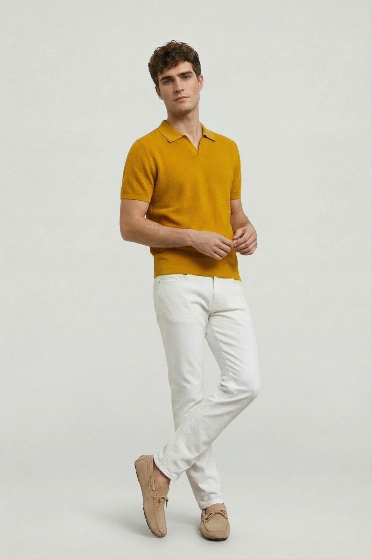 Ormes Sarı %100 Pamuk Triko Polo Tişört, sade ve rafine tasarımıyla yaz stiline modern bir dokunuş kazandırır. Yumuşak dokulu pamuklu triko kumaşı sayesinde gün boyu konfor sunarken, düğmesiz polo yaka detayı ürüne minimal ve şık bir görünüm kazandırır. Hafif yapısı ile sıcak havalarda ferah bir kullanım sağlarken, hem günlük hem de smart casual kombinlerde rahatlıkla tercih edilebilecek zamansız bir parçadır.