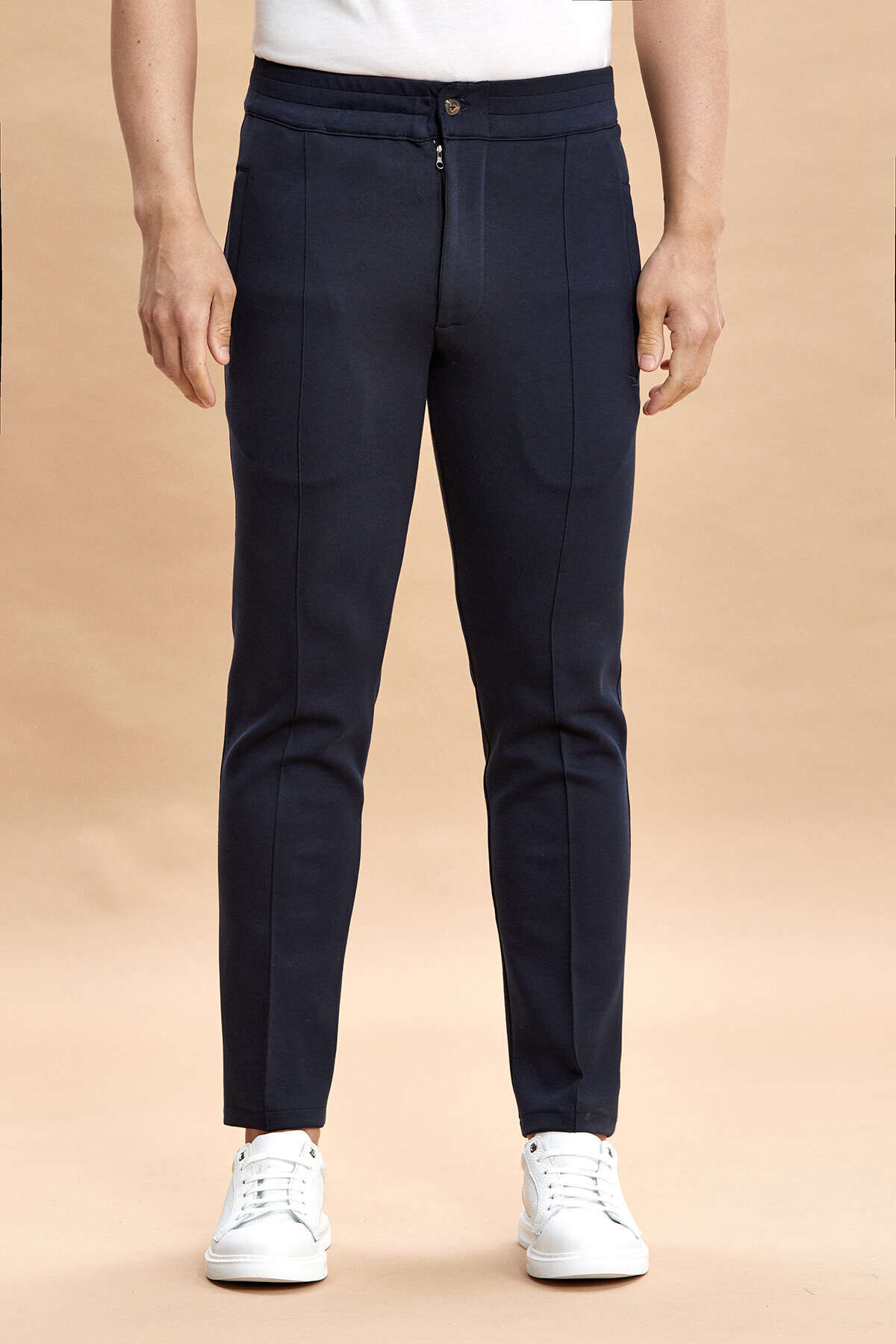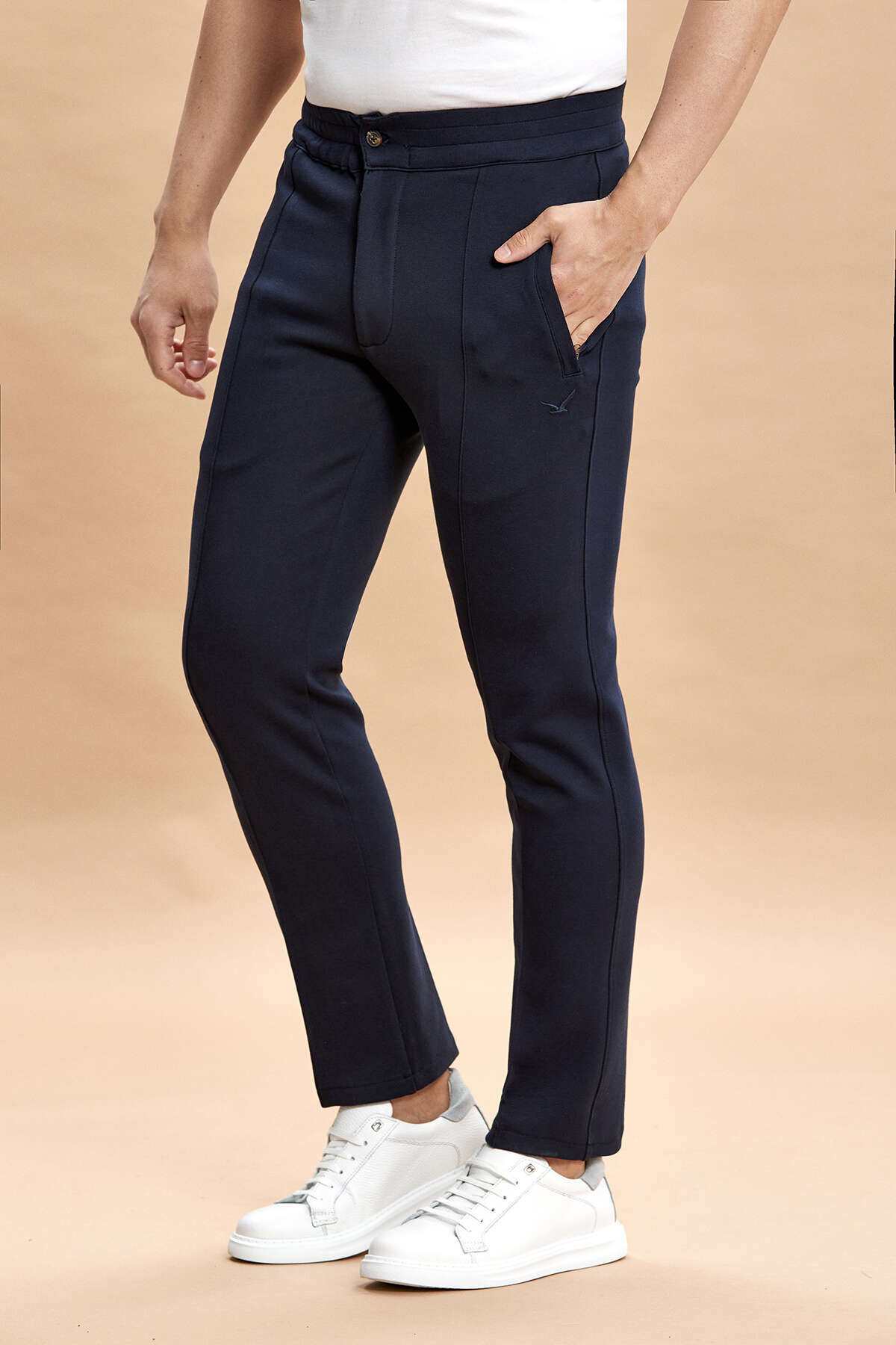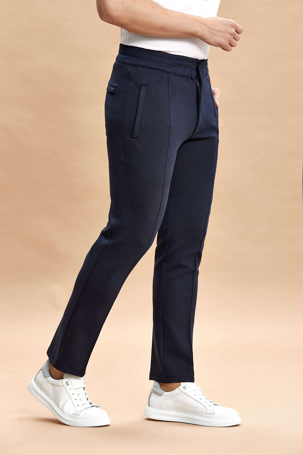 Rivoli Lacivert Pamuk Karışımlı Sweat Pantolon, konfor ve şıklığı bir araya getiren modern bir tasarıma sahiptir. Pamuk, polyester ve elastan karışımlı kumaşı sayesinde hem yumuşak hem de esnek bir kullanım sunar. Günlük kombinlerde rahatlıkla tercih edilebilecek bu model, hareket özgürlüğü sağlarken şık görünümünden ödün vermez.