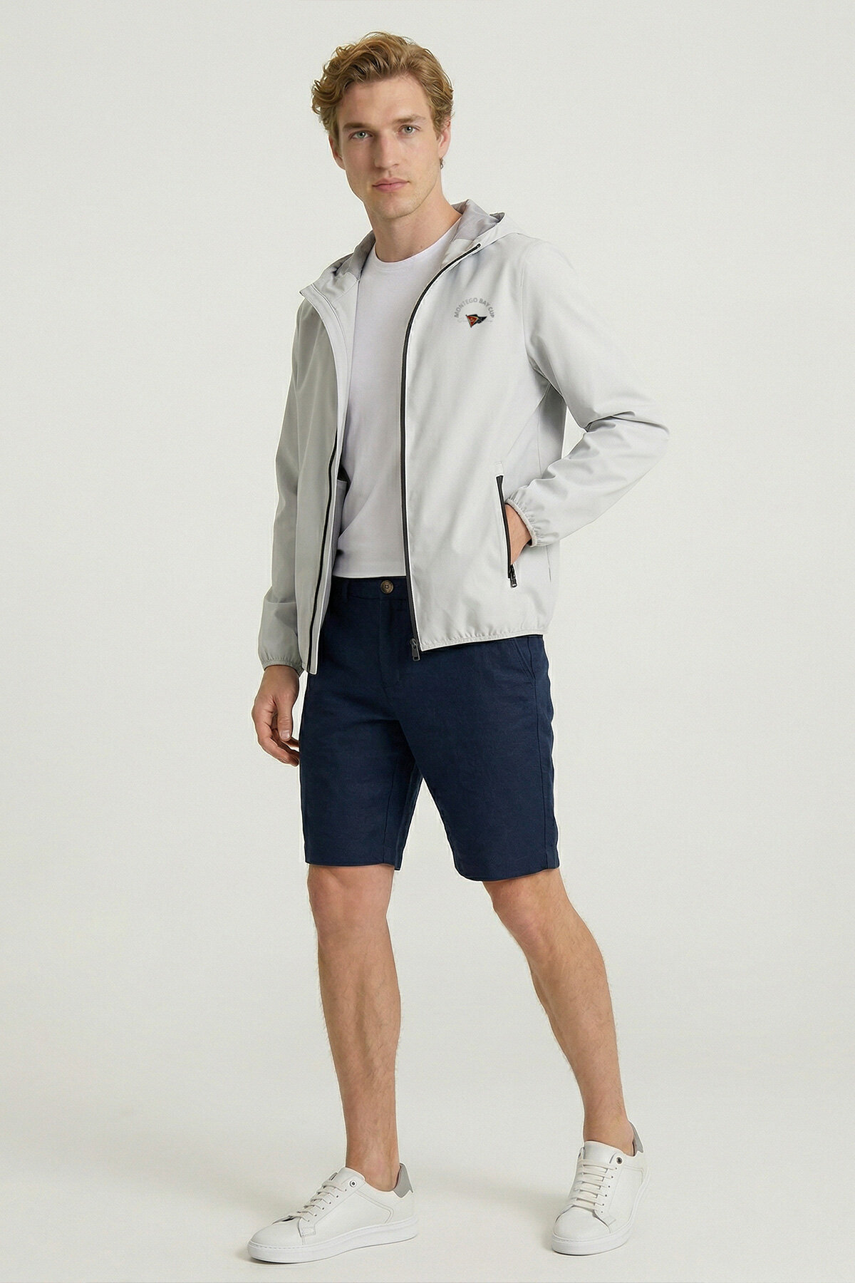 The hooded thin coat is an indispensable outerwear piece for both modern city life and sea lovers. While it provides protection against wind and rain with its water-resistant outer surface and lightweight structure, it offers comfort all day long thanks to its breathable inner structure. This model, which draws attention with its minimal design, provides maximum comfort with its elastane fabric, while combining functionality with elegance with zippered pockets and fine details. The marine-themed prints of the coat complete its sporty stance.