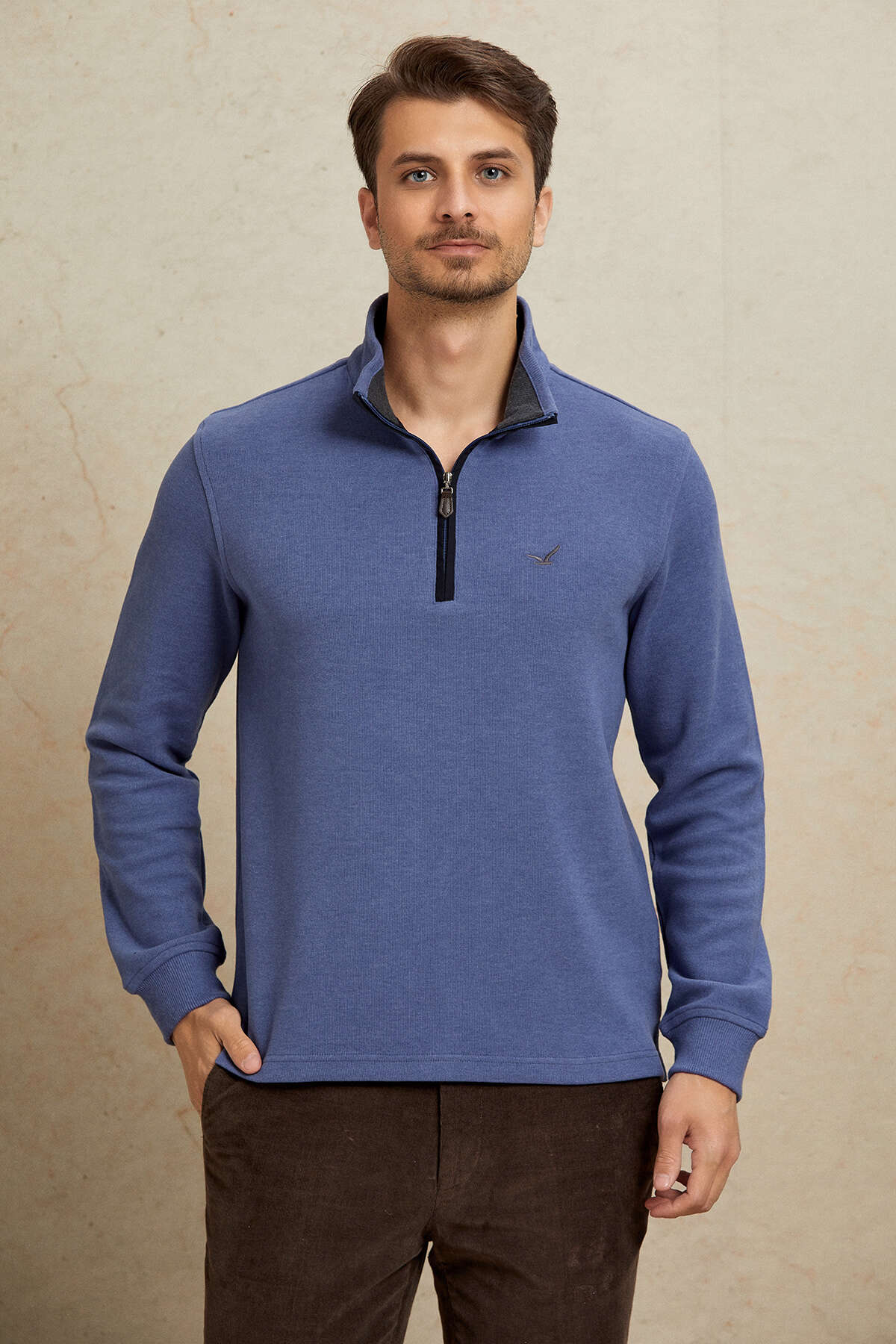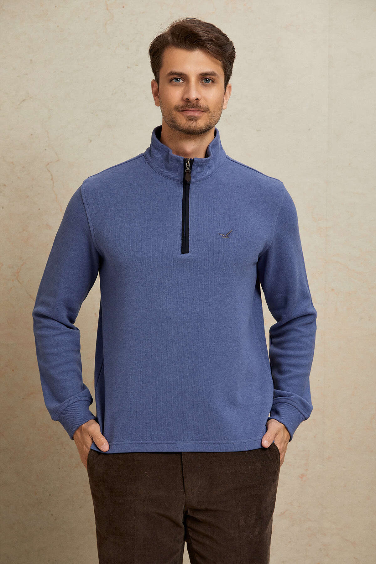 Winaro Mavi Yarım Fermuarlı Pamuk Karışımlı Sweatshirt, modern ve sade tasarımıyla günlük stilin vazgeçilmez parçalarından biridir. Yarım fermuar detayı ve dik yaka formu ürüne sportif ve dengeli bir görünüm kazandırırken, pamuk karışımlı kumaşı gün boyu konforlu bir kullanım sunar. Minimal tasarımı sayesinde hem casual kombinlerde hem de smart casual görünümlerde rahatlıkla tercih edilebilecek çok yönlü bir parçadır.